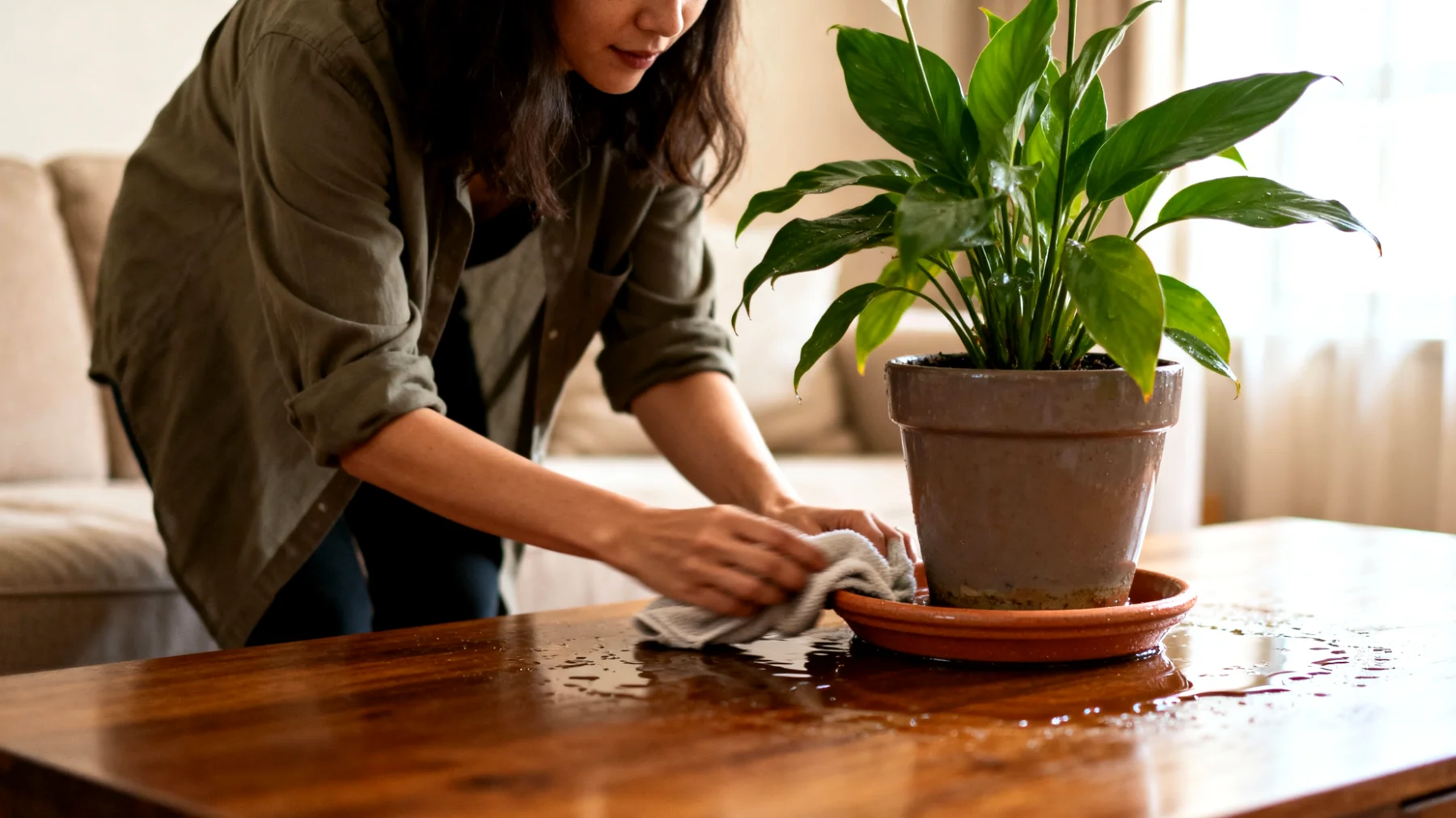 Oltre alla caduta, c’è una seconda minaccia sottile ma significativa: i sottovasi che trattengono acqua. Se non vengono svuotati regolarmente, generano fili d’acqua invisibili ma scivolosi su tavoli e pavimenti, infiltrazioni nelle superfici porose e condizioni ideali per lo sviluppo di muffe e spore batteriche. L’umidità persistente, anche quando non immediatamente visibile, può causare danni graduali alle superfici con cui entra in contatto. Le superfici bagnate aumentano il rischio di caduta, e sappiamo già quanto le cadute siano statisticamente rilevanti negli incidenti casalinghi.